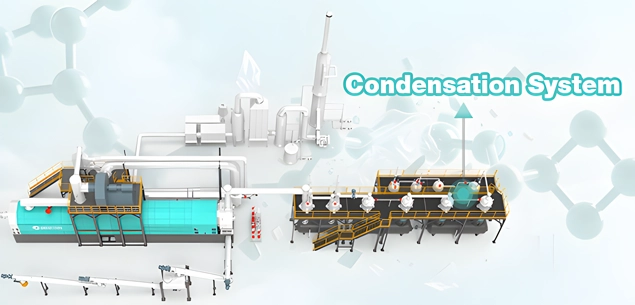 Thiết bị ngưng tụ tách hiệu quả các phần dầu nhẹ và dầu nặng. Thiết bị này làm giảm hàm lượng hắc ín, cải thiện độ trong của dầu và tăng sản lượng dầu nhẹ có thể sử dụng.