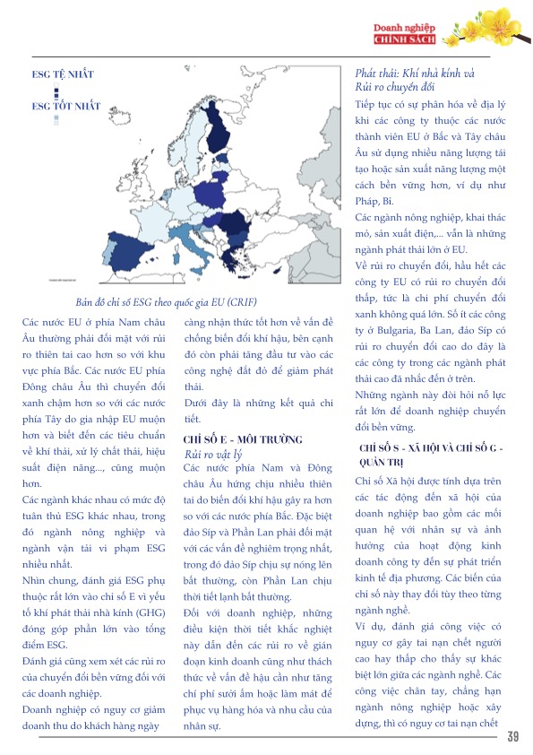 ESG Education & Business rất vui mừng và tự hào khi bài viết của chúng tôi với chủ đề “Từ Điểm ESG Của EU Đến Bài Học Kinh Nghiệm Cho Việt Nam” đã được đăng tải trên Tạp chí Doanh Nghiệp và Chính Sách – một ấn phẩm đặc biệt chào Xuân với chủ đề chính: Kỷ Nguyên Mới!