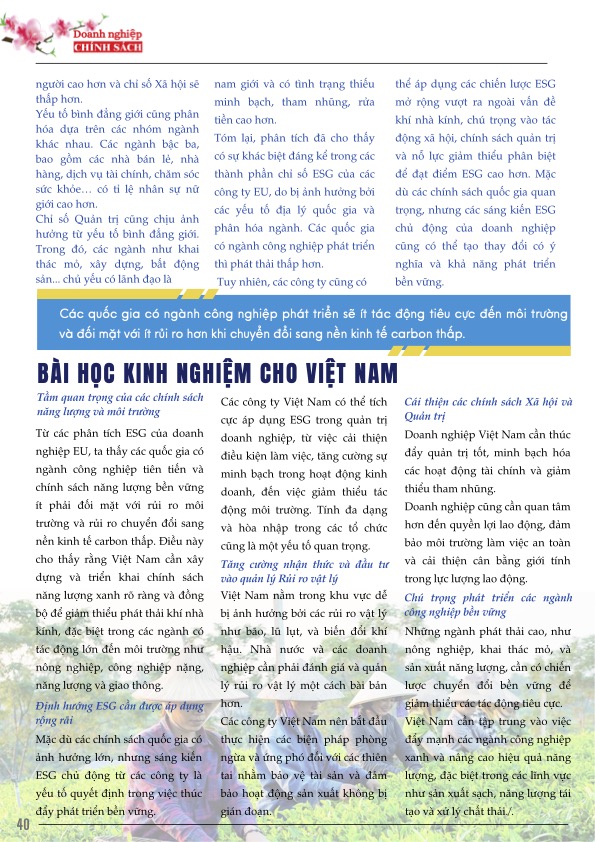 ESG Education & Business rất vui mừng và tự hào khi bài viết của chúng tôi với chủ đề “Từ Điểm ESG Của EU Đến Bài Học Kinh Nghiệm Cho Việt Nam”