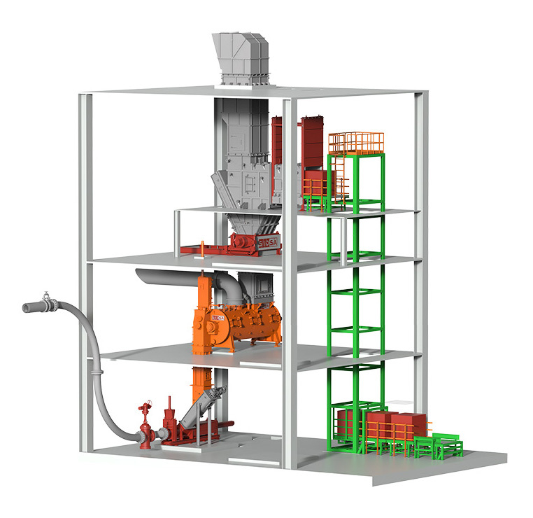 Hệ thống băm kín (CSS) kết hợp sự an toàn của SMP và tính linh hoạt của một máy hủy tài liệu duy nhất và phù hợp với nhiều loại sản phẩm với công suất cao và cho nhiều cách khác nhau để đưa vào lò đốt.