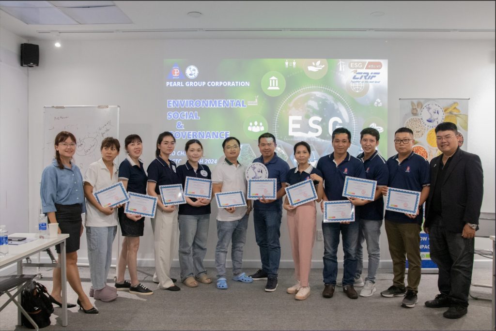 Trong quá trình hợp tác với Tập Đoàn Trân Châu, ESG Education & Business đã hoàn thành bước tập huấn đầu tiên cho các thành viên ban lãnh đạo nhà máy và toàn thể nhân viên. Qua chương trình đào tạo này, toàn bộ đội ngũ đã nhận thức rõ ràng về các vấn đề ESG cần triển khai trong 3 năm tới, đồng thời cũng đã thảo luận chi tiết về các hành động cần thực hiện để đảm bảo rằng các mục tiêu ESG của Tập Đoàn sẽ được hoàn thành đúng tiến độ.
